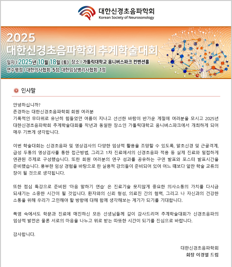 대한신경초음파학회 2025년 추계학술대회 안내