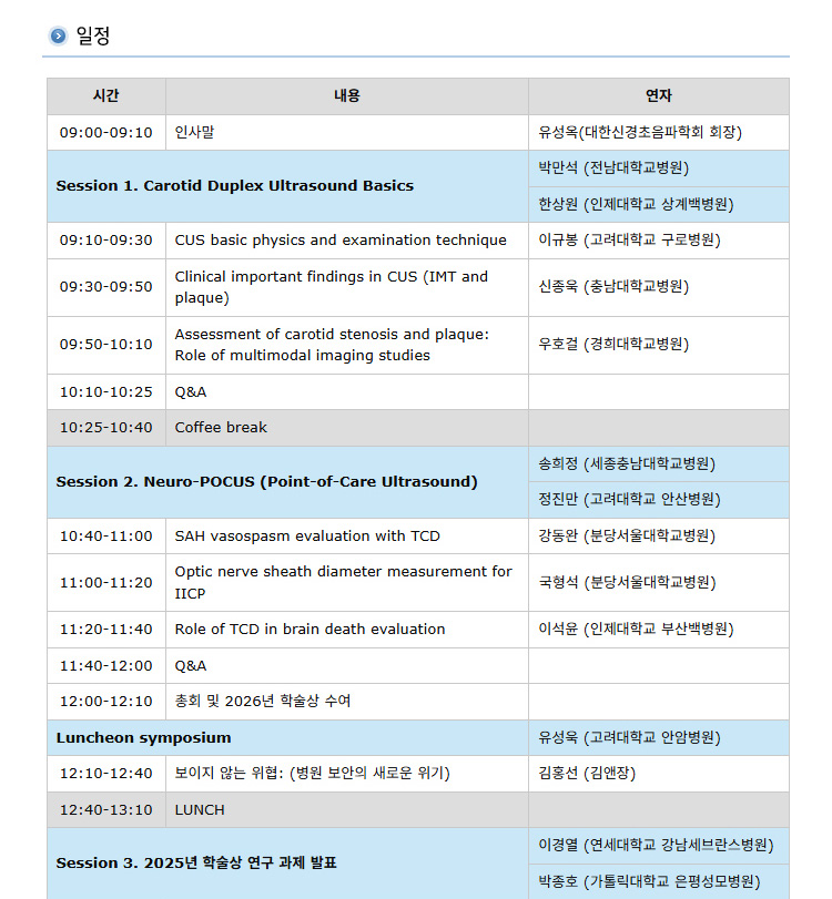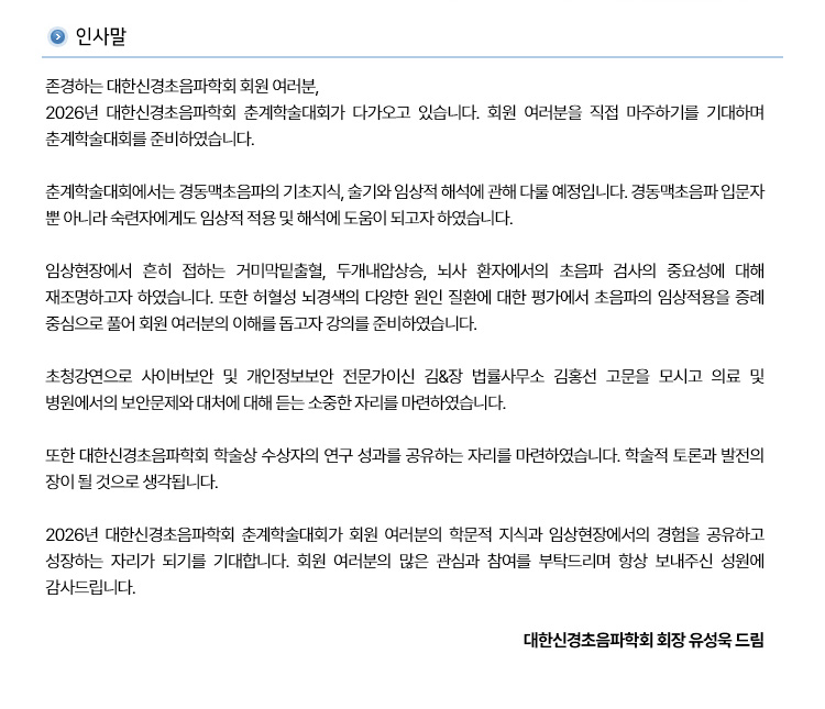 대한신경초음파학회 2026년 춘계학술대회 안내